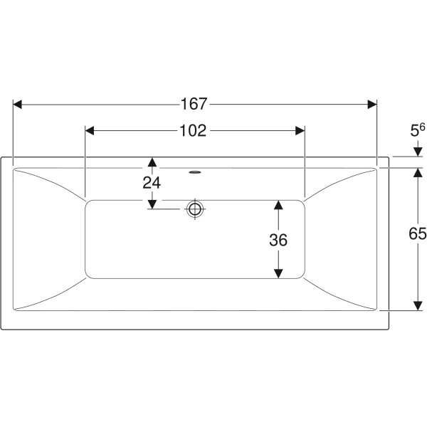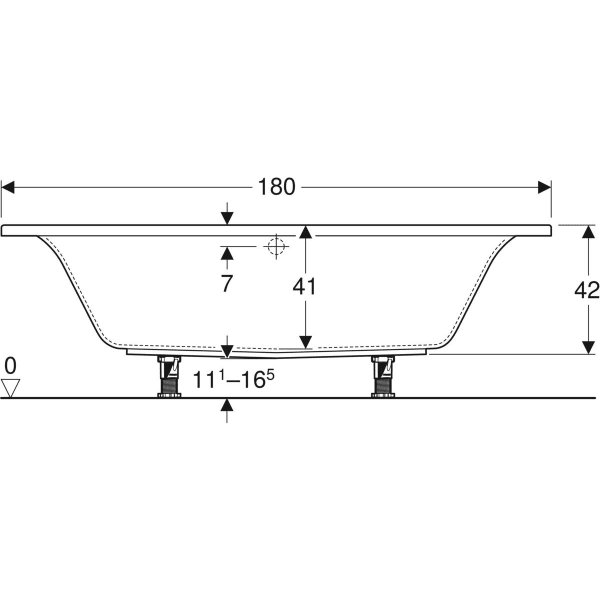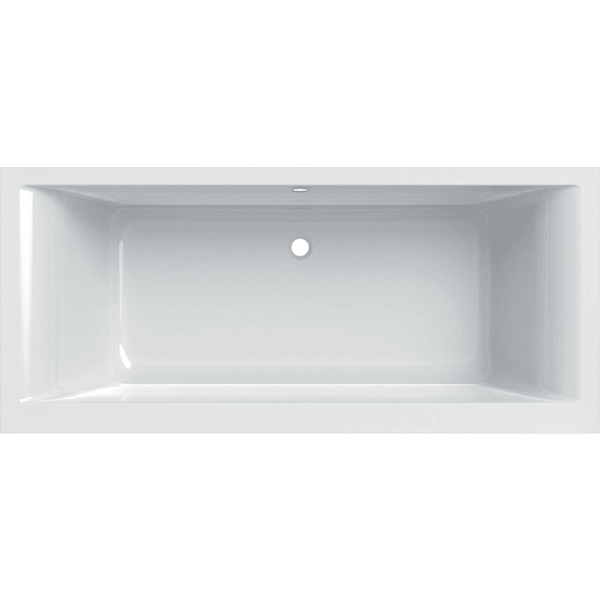Geberit Renova Plan firkantet badekar Duo, leveres med ben. Dette smukke og stilrene badekar egner sig til to personer da det har afløb i midten - Afløbsåbningen er Ø52 mm.