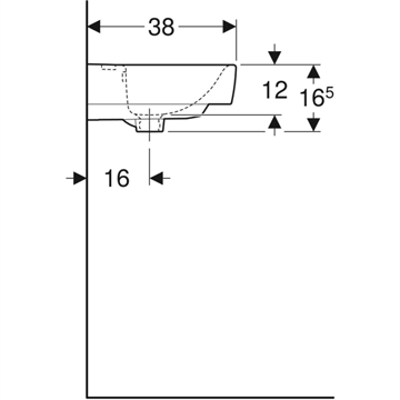 Geberit Renova Plan håndvask med hanehul og overløb asymmetrisk - vasken er til montering på væg.