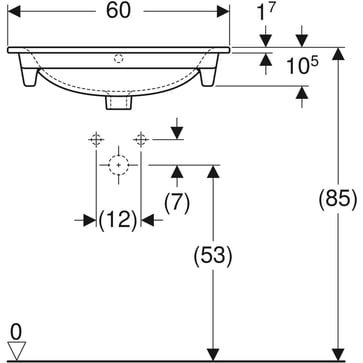 Geberit Renova Plan porcelæn håndvask, 600 x 480 x 168 mm, t/møbel, hvid