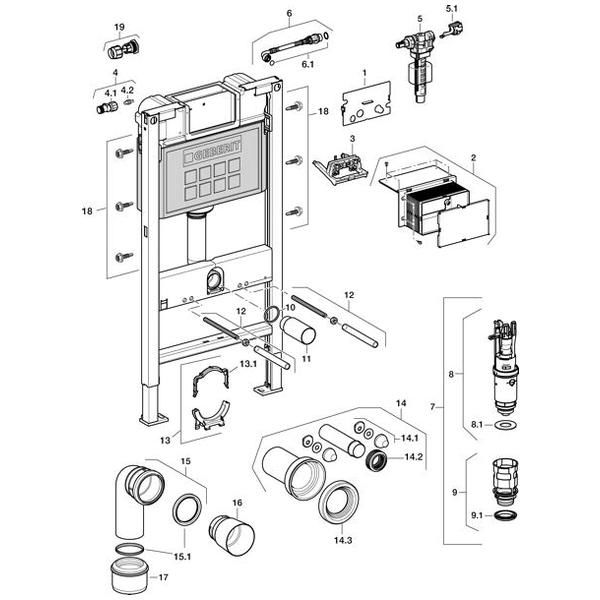 Geberit reservedele for Duofix cisterner - Afgangsbøgning til Duofix Ø90 mm