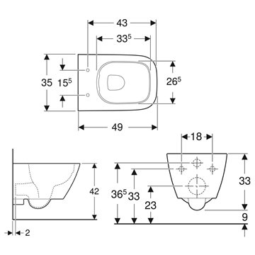 Geberit Smyle Square kompakt væghængt toilet skål uden skyllekant, hvid