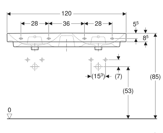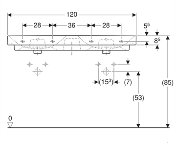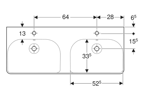 Geberit Smyle Square dobbeltvask: 120 x 48cm, Hvid / KeraTect