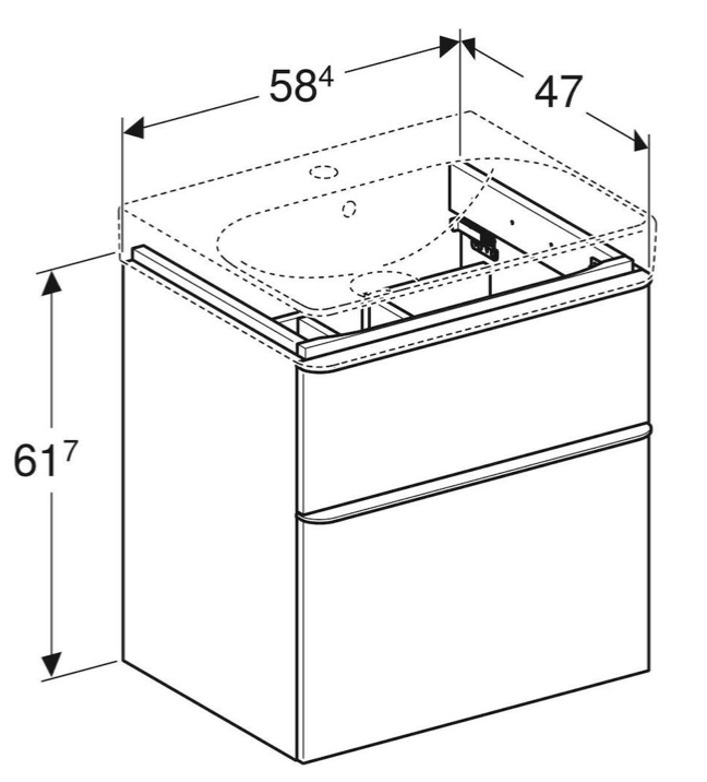 Geberit Smyle vaskeskab 584x617x470mm 2skuffer nøddetræ hickory spånplade melamin