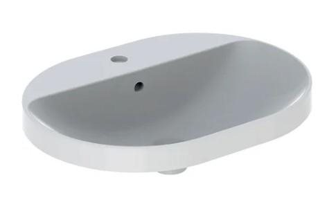 Geberit VariForm ellipseformet håndvask til indbygning 60 x 45 cm med Hanehul midtpå, BEMÆRK uden overløb