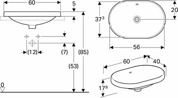 Geberit VariForm håndvask 60 cm elipseformet til nedfældning med overløb