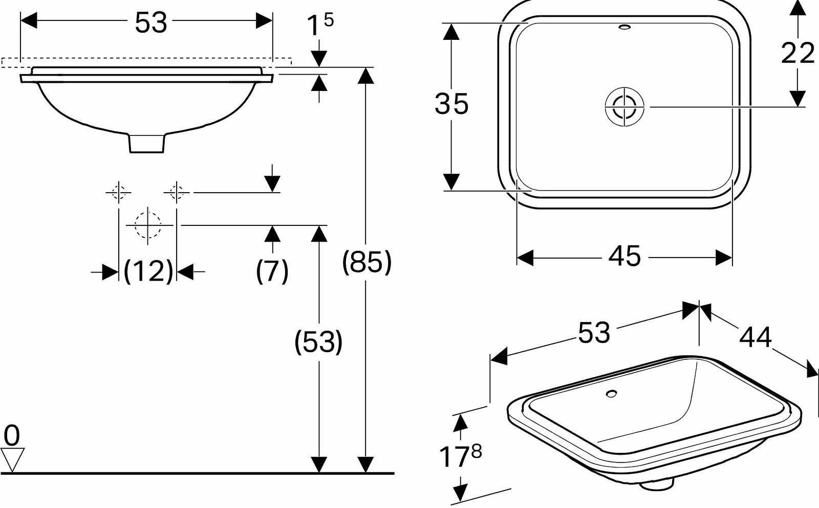 Rektangulær håndvask til underlimning. Til montering i bordplader af forskellig materiale. Komplet monteringssæt medfølger. Geberit VariForm er nyeste sortiment af håndvaske, som fremstilles i udgaverne, rund, rektangulær, oval og elipse formet. VariForm vaskene produceres endvidere som, bordstående, til nedfældning, halv forsænket eller til underlimning. Fælles for vaskene er den meget tynde porcelænskant som indrammer vaskebassinet og giver vaskene et eksklusiv design.