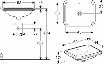 Geberit VariForm underlimningsvask 45 cm med overløb