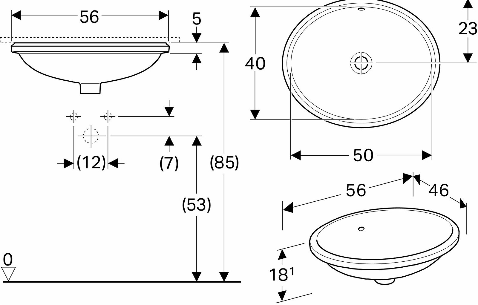 Geberit VariForm underlimningsvask 50 cm oval