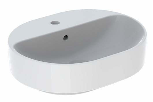 Geberit VariForm bordstående 50 cm elipseformet håndvask med hanehul og overløb.