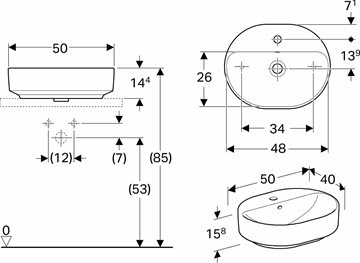 Geberit VariForm vask 50 cm elipseformet til bord med hanehul og overløb