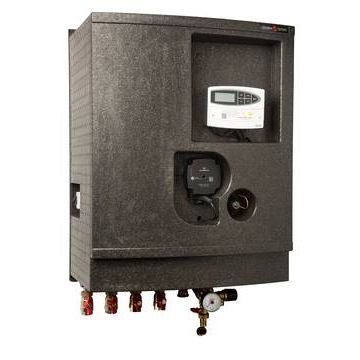 Termix VVX med den intelligente TPV-regulator og fuldisolering er en komplet fjernvarmeinstallation til indirekte forsyning med indbygget vandvarmer og varmeveksler til rumopvarmning