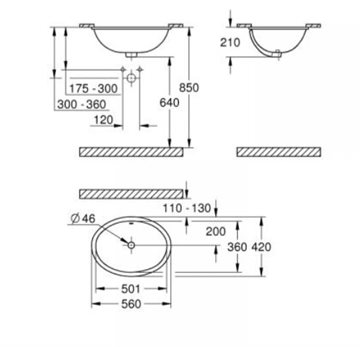 Grohe Bau 56 Oval håndvask 56 x 42 cm til underlimning