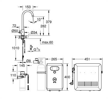 • GROHE Blue filter, CO2-flaske og rengøringspatron inkluderes ikke og skal bestilles seperat