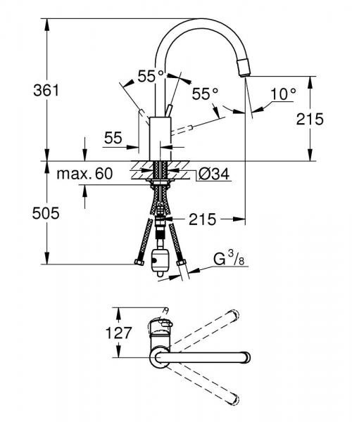 Grohe Concetto køkkenarmatur med udtrækstud C-tud, Supersteel