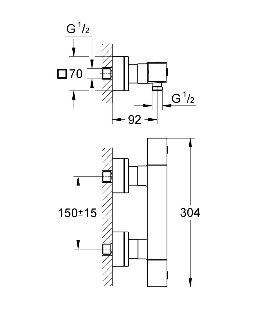 Grohe Cube termostat brusebatteri med rosetter