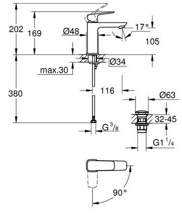 Grohe Cubeo Håndvaskarmatur m/push open bundventil, krom