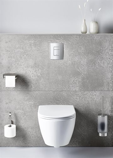 Komplet Grohe indbygningstoiletpakke "alt-i-1" med indbygningscisterne, betjeningsplade i krom, Essence hængeskål og Soft close sæde
