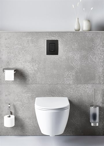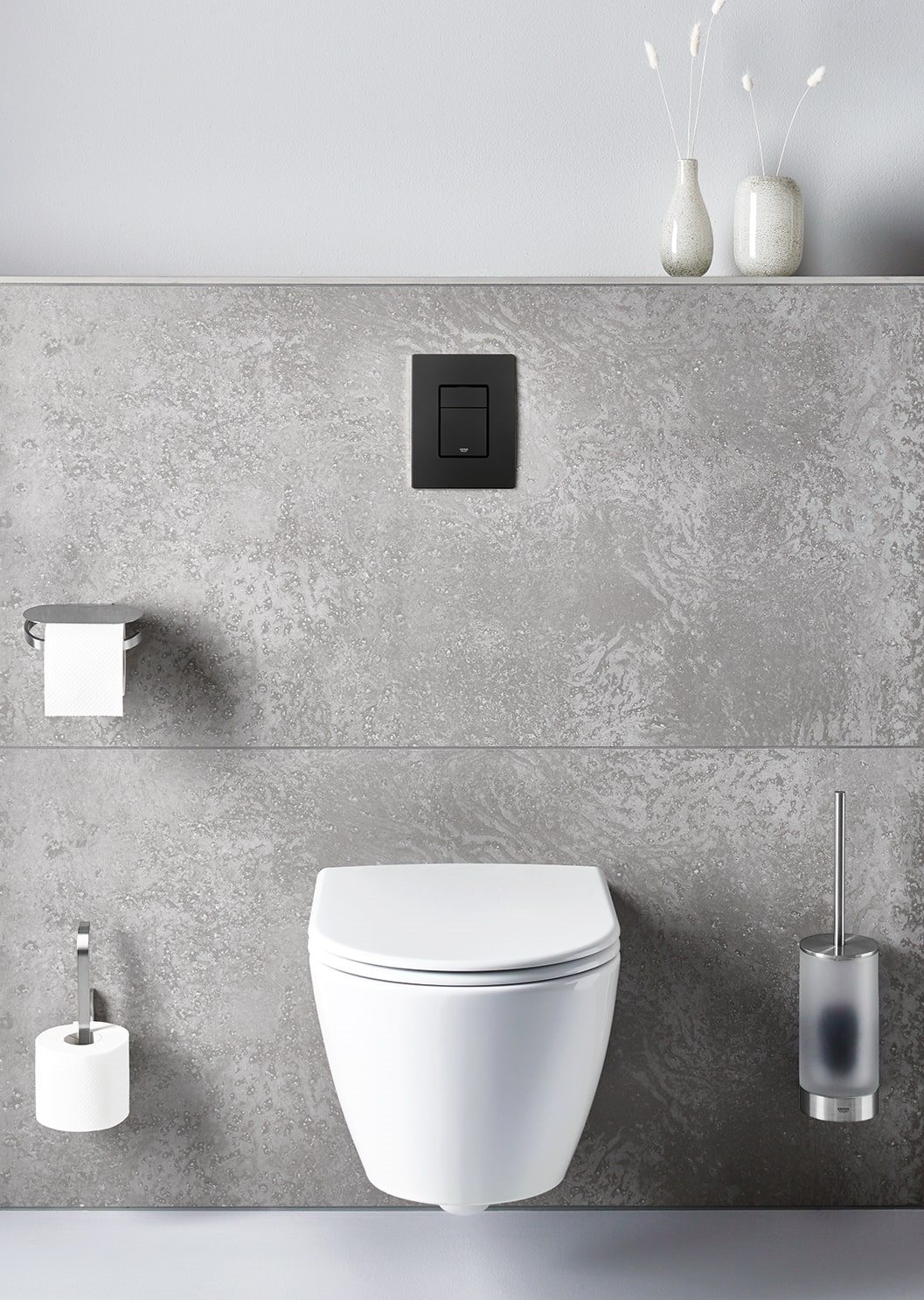 Komplet Grohe indbygningstoiletpakke "alt-i-1" med indbygningscisterne, betjeningsplade i Mat sort, Essence hængeskål og Soft close sæde