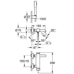 Grohe Essence New Etgrebsbatteri til badekarbatteri med brus i krom