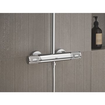 Opsætningen eller installationen af et Grohe brusesystem er nem og ukompliceret, da den er identisk med et almindeligt brusearmatur med en centerafstand på 150-155 mm - eneste reelle forskel er, at selve brusestangen som forbinder termostatarmaturet med hovedbruseren, også skal fikseres til væggen.