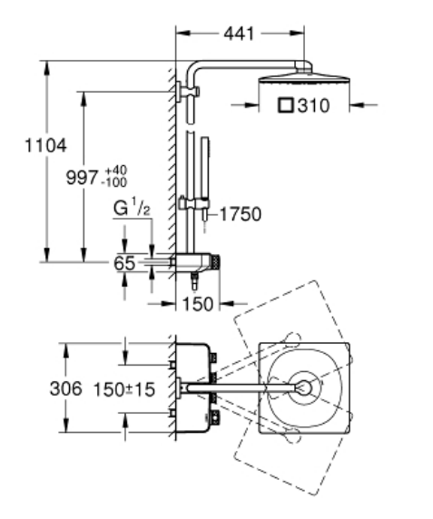 Opsætningen eller installationen af et Grohe brusesystem er nem og ukompliceret, da den er identisk med et almindeligt brusearmatur med en centerafstand på 150-155 mm - eneste reelle forskel er, at selve brusestangen som forbinder termostatarmaturet med hovedbruseren, også skal fikseres til væggen.