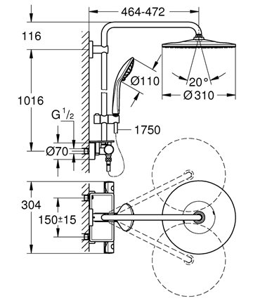Opsætningen eller installationen af et Grohe brusesystem er nem og ukompliceret, da den er identisk med et almindeligt brusearmatur med en centerafstand på 150-155 mm - eneste reelle forskel er, at selve brusestangen som forbinder termostatarmaturet med hovedbruseren, også skal fikseres til væggen.