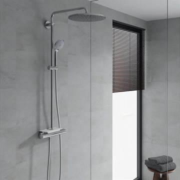 Grohe Rainshower 310 termostat brusesystem er en populær bruseløsning på grund af sit moderne, elegante og funktionelle design. Og de mindste familiemedlemmer kan trygt gå i bad, da SafeStop-knappen er indstillet til 38 grader, og forhindrer børn i at skrue op for temperaturen.
