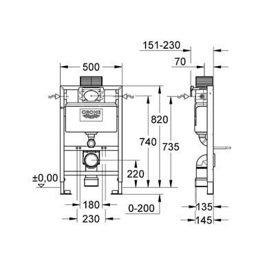 - Grohe Rapid SL indbygningscisterne Top-/frontbetjent 82 cm