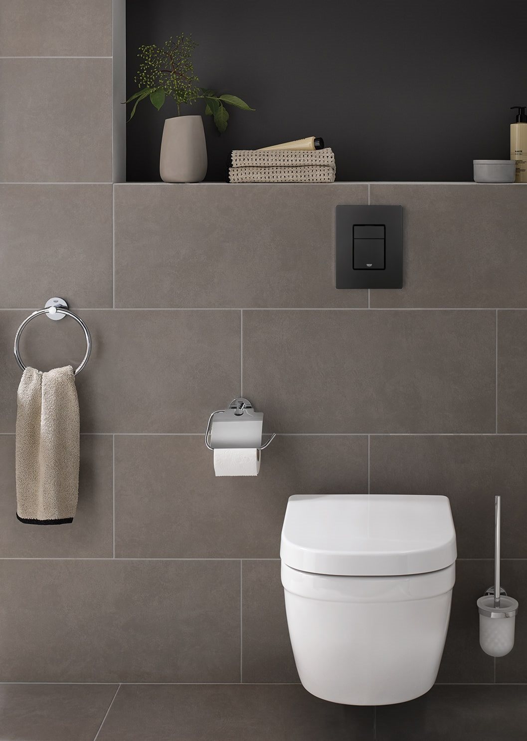 Komplet Grohe indbygningstoiletpakke "alt-i-1" med indbygningscisterne, betjeningsplade i Mat sort, Euro hængeskål og Soft close sæde