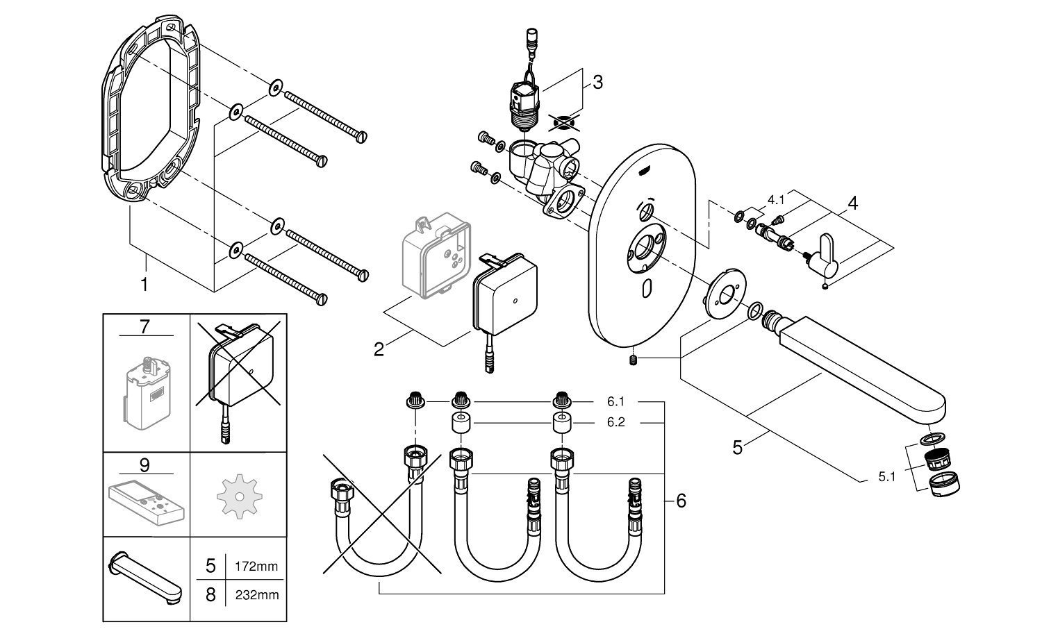 Sættet er til installation med matchende GROHE Indbygningsboks (36339000), sælges separat.