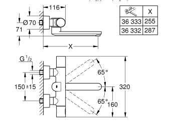 Grohe Eurosmart CE elektronisk håndvaskarmatur montage udvendigt på væggen i krom