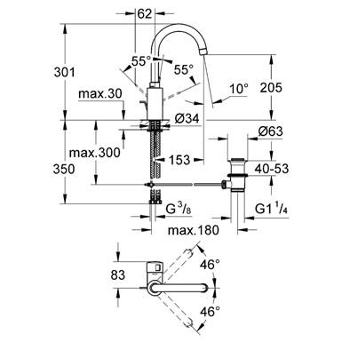 Grohe Eurosmart Cosmopolitan håndvaskarmatur med høj tud og bundventil - krom