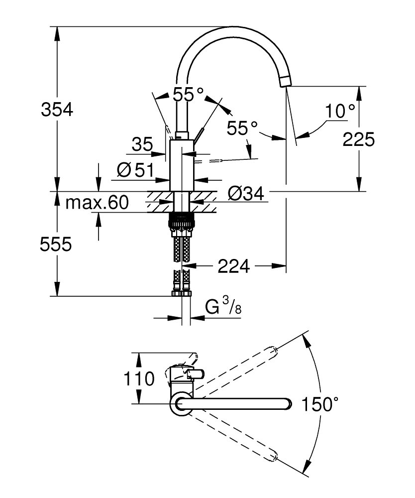 Køkkenbatteriet er let at rengøre takket være GROHE StarLight krom-belægningen. Køkkenvandhanen skal blot tørres af med en tør klud – den ultraglatte overfladefinish er ridsefast og sikrer et varigt blankt udseende. Du vil kunne spare masser af tid på rengøringen, fordi dit armatur altid ser nyt og blankt ud.