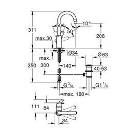 Grohe Eurosmart håndvaskbatteri L-Size med høj svingtud og bundventil i krom