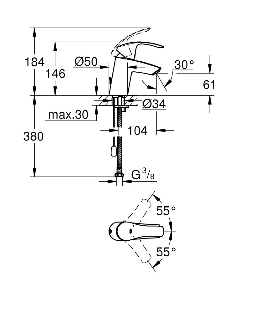 Grohe Eurosmart vandhane med forsænkningsbar kæde - krom