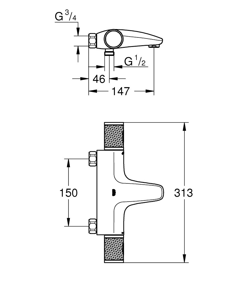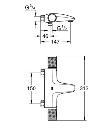 Grohe Grohterm 1000 Performance termostat kar- og brusearmatur uden rosetter og forskruninger, krom