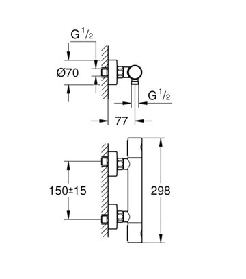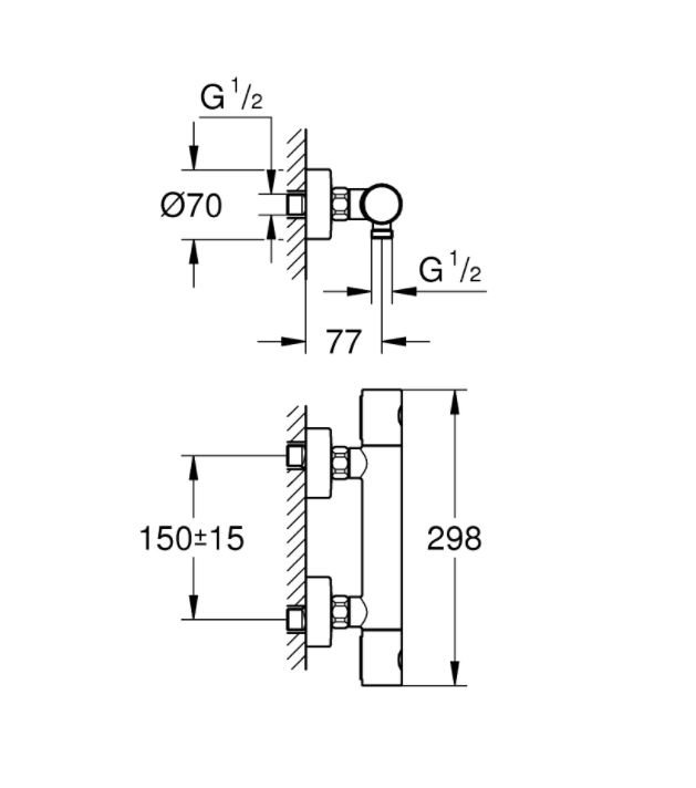 Grohe Grohterm Cosmopolitan M er sofistikeret elegance i et smukt, cylindrisk og slankt design. Brusetermostaten har 1/2" tilslutning ned, hvorpå skrues bruserslangen. Leveres komplet med forskruninger og rosetter.