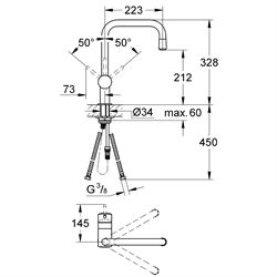 Vandhanen har en høj elegant og svingbar C-tud med 50 cm udtræksslange, der er ideel til køkkenarbejde. Den udtrækkelig udløbstud er praktisk og giver stor arbejdsradius uanset, om der skal vaskes grønsager eller fyldes en gryde - det har desuden automatisk tilbagetrækning.