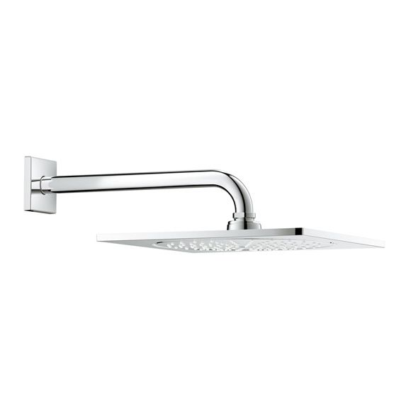 Grohe Rainshower F-Series hovedbruseren med brusearm har et kvadratisk og grandiost design der på smuk vis kombinere det kantede med afrundede elementer.