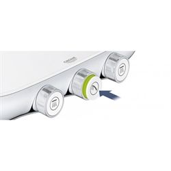 På GROHE Rainshower SmartControl brusesystem DUO knapperne vælges mellem to forskellige stråletyper til hovedbruseren og en knap styre håndbruseren.