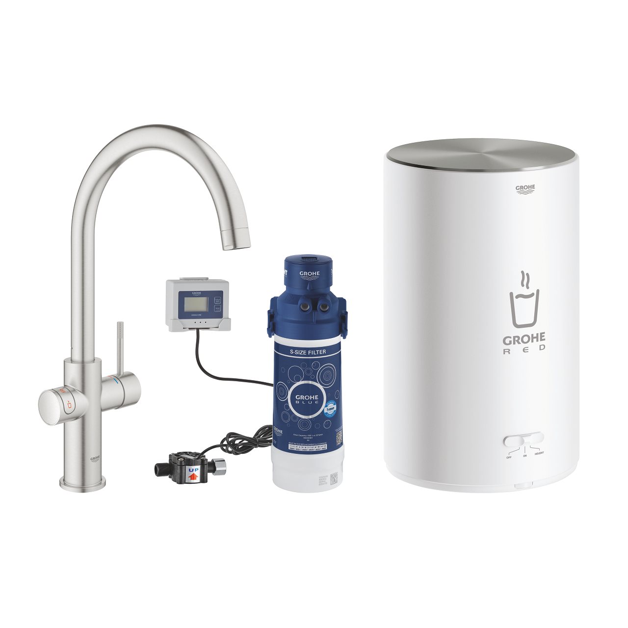 GROHE Red Duo køkkenarmatur med C-tud & 3 L kedel - Supersteel.