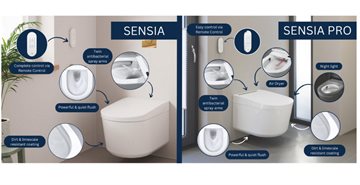 GROHE Sensia douchetoilet leveres med GROHE Hygiene Clean, antibakteriel glasur PureGuard (overholder SIAA Kokin japansk standard) og anti-stick keramisk belægning AquaCeramic