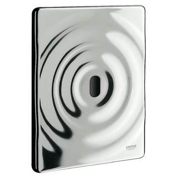 Grohe Tectron Surf berøringsfri betjeningsplade i krom øger du hygiejnen betydeligt. Trykknappen muliggør et justerbart skyl og er med infrarød sensor til automatisk skyl, overvågning, konfiguration samt serviceformål.