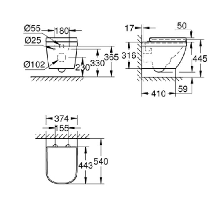 - Grohe Euro Ceramic væghængt toilet uden skyllekant 540 x 374 mm