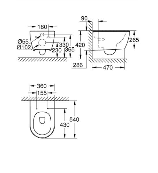 - Grohe Essence væghængt toilet uden skyllekant 540 x 360 mm