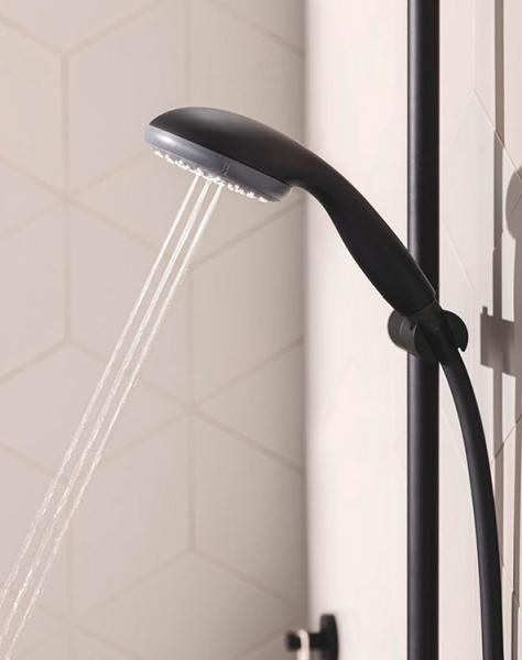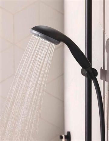 Grohe brusesættet er udført i farven Midnight black (matsort) med GROHE Long-Life-belægning , der er ridsefast og let at rengøre.