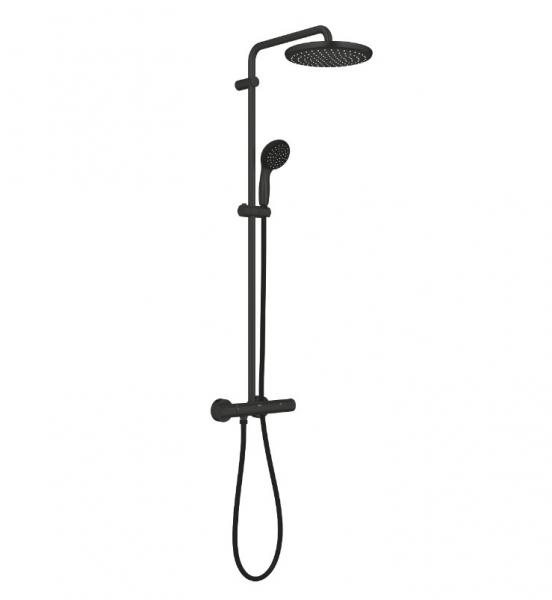 Grohe Vitalio Start 250 brusesystem med termostatarmatur og stor rund hovedbruser, matsort