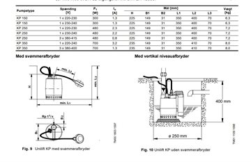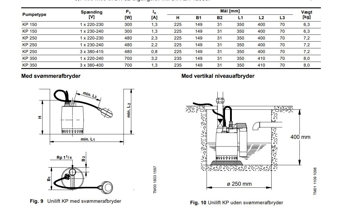 Grundfos Kælderpumpe KP150AV-1 230V. Vertikal automatisk stop/start. Med 10 meter kabel.
