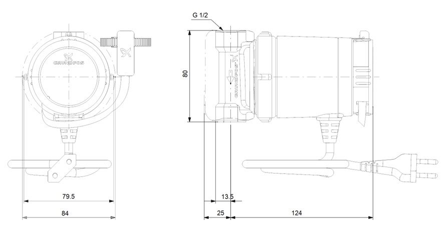 Grundfos UP15-14BA PM 80 Comfort til brugsvand.
