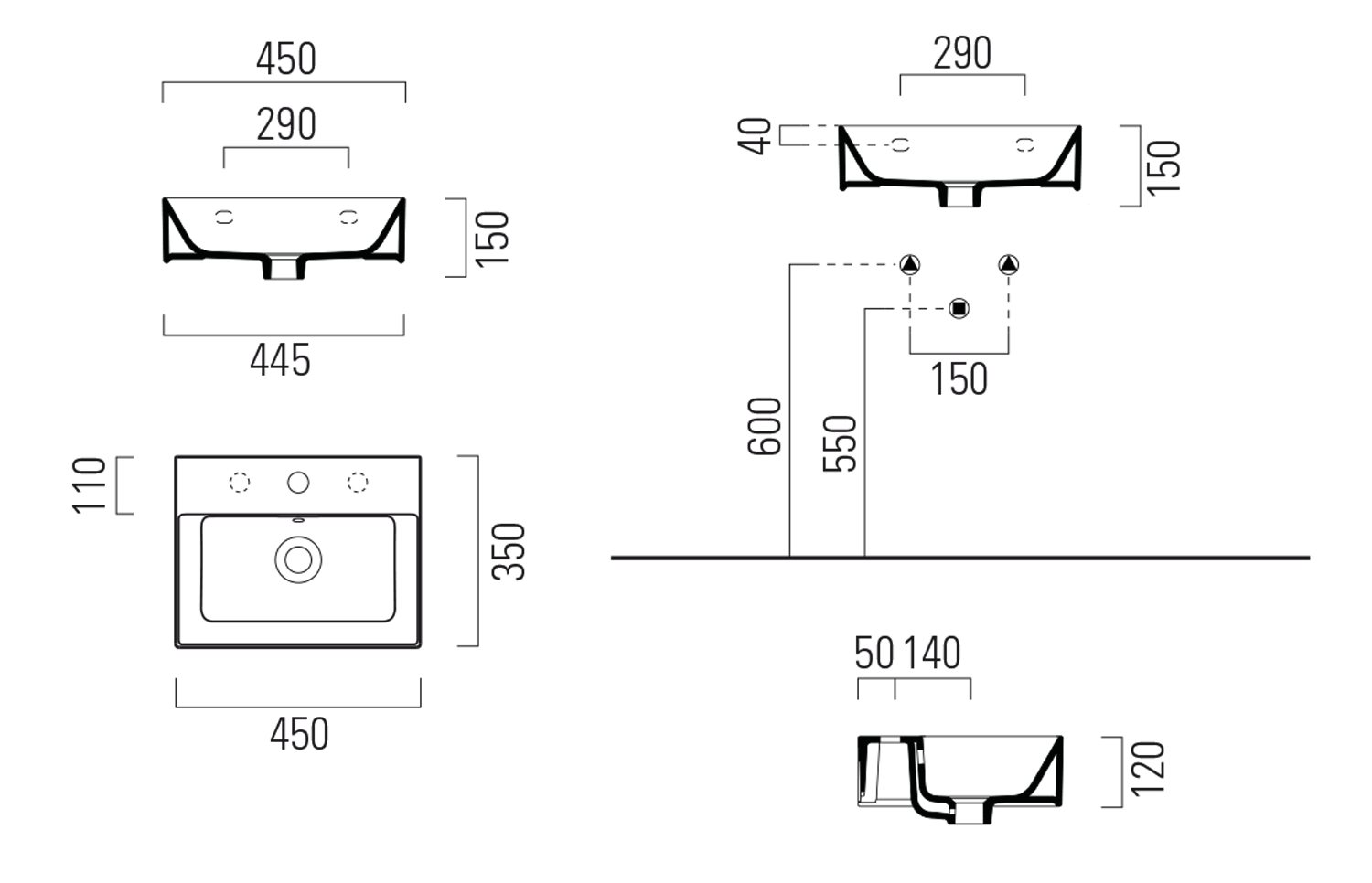 Flere monteringsmuligheder – montering på væg med bolte eller placeres ovenpå bordplade